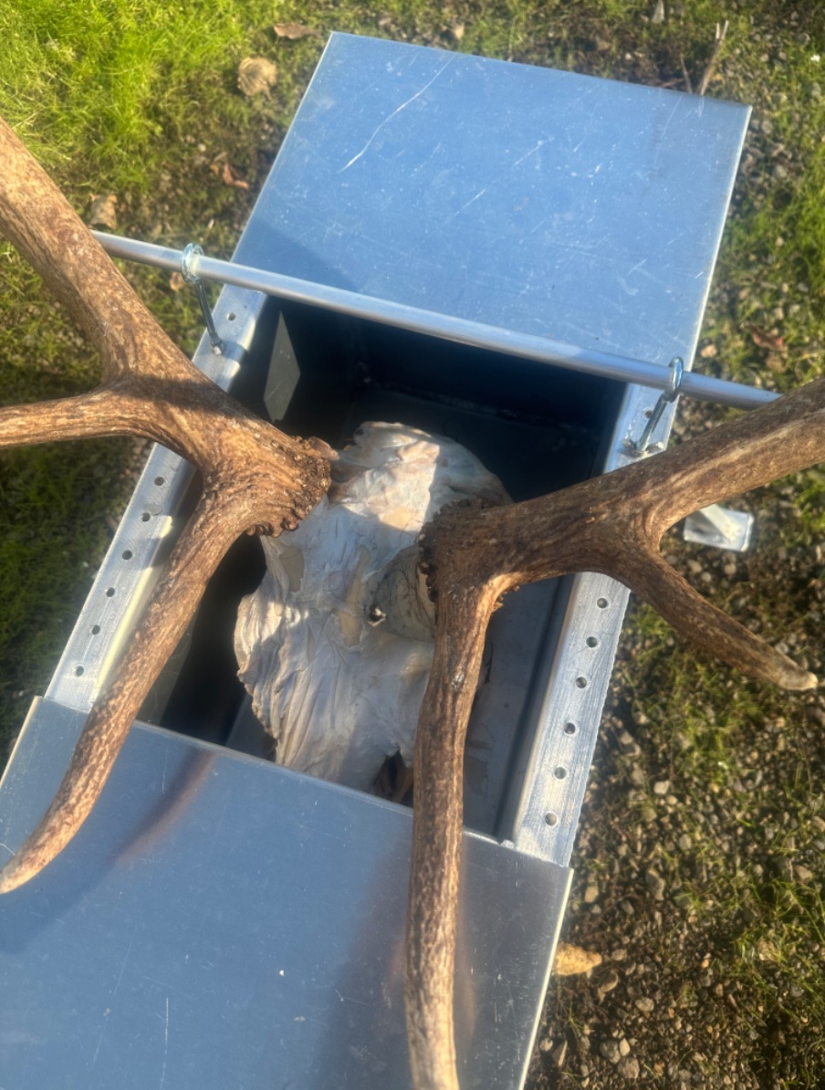 The SkullBox boiler was developed to help hunters process European mounts in a way that supports lawful transportation of cervid skulls.   The system is designed for portability and ease of use allow allowing skulls to be boiled, cleaned and prepared at the field site base camp or home prior to Transport.